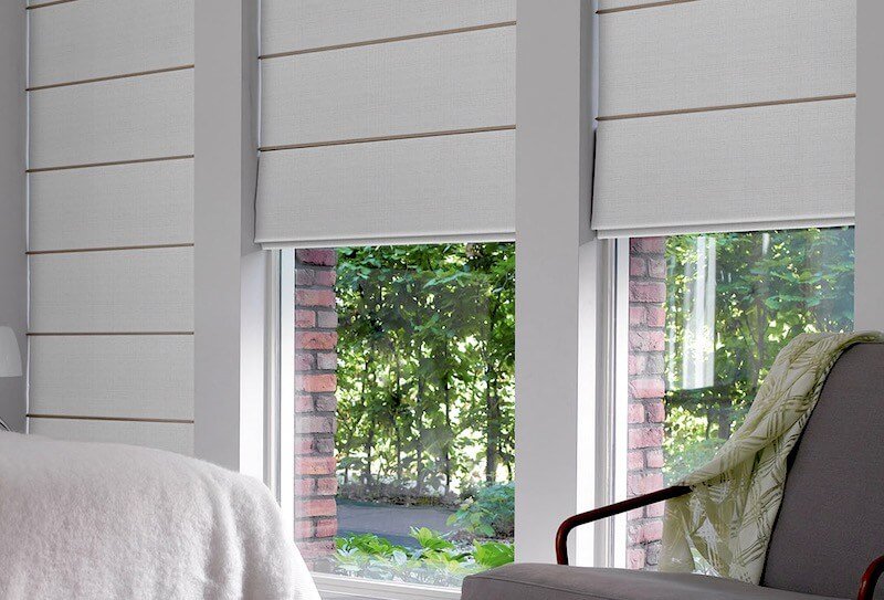 A Cortina Romana é confeccionada com tecido tipo lona para impedir a luminosidade, pois a sua espessura é bastante eficiente. O controle da entrada de luz é conseguido por meio da altura em que a cortina fique travada. Se você quiser que a luz entre totalmente, basta recolher a cortina. Com a cortina à meia janela, a quantidade de luz é menor.
